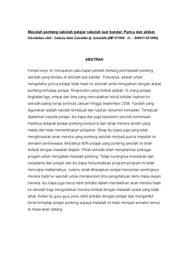 Punca Masalah Ponteng Sekolah Essaytix